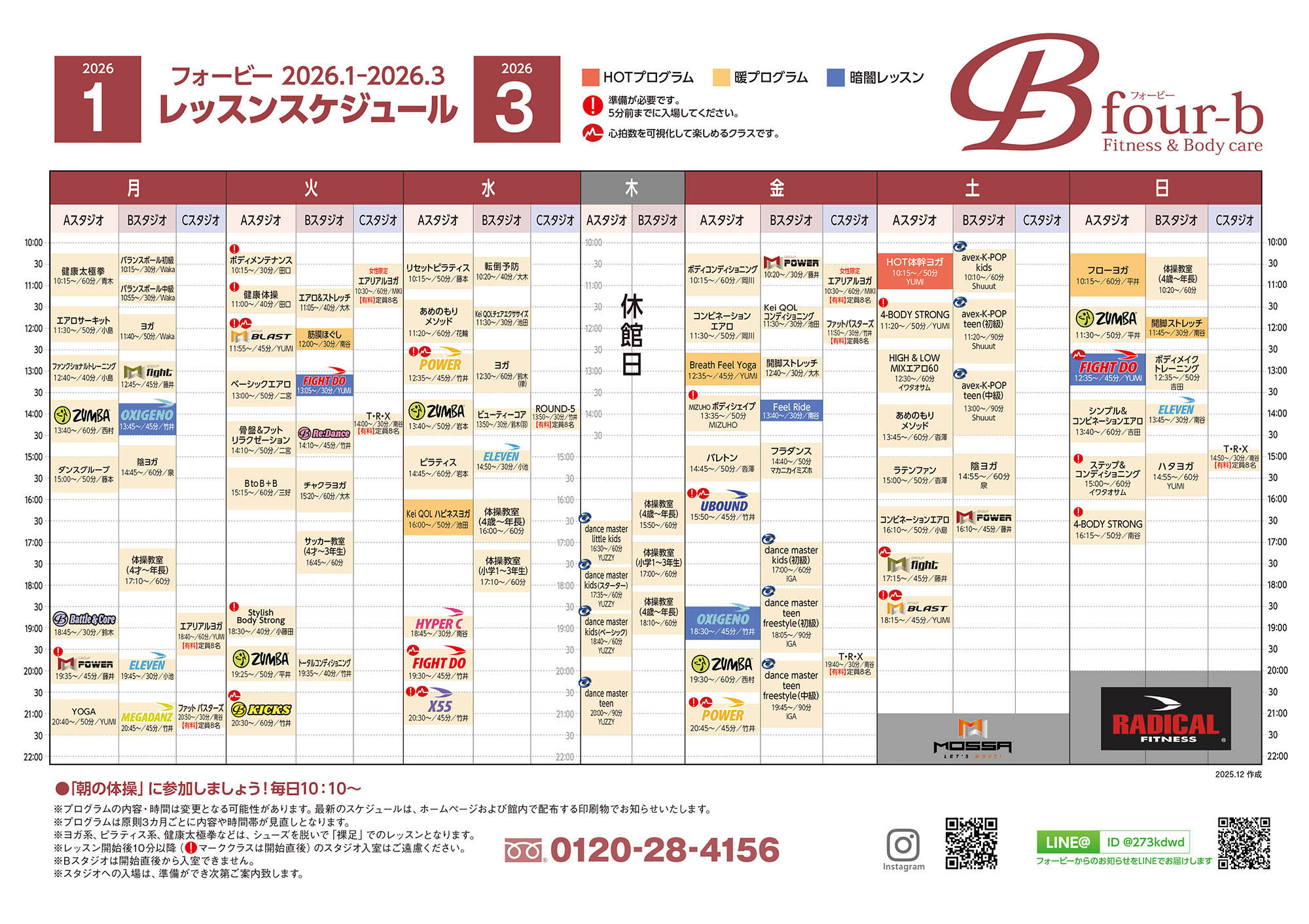ヨガ・ピラティス、暗闇系、HOT系レッスンまで、多彩なプログラムをご用意しています。